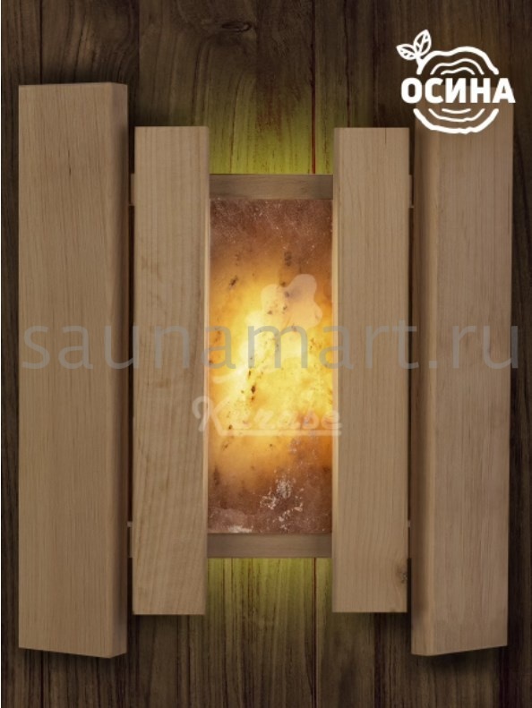Натуральные материалы, интересный дизайн, приятная фактура древесины и уникальный природный рисунок соли –  сделают абажур главным элементом декора бани, создающим неповторимую атмосферу. Для изготовления абажура используется древесина ольхи премиального качества, а так же декоративная вставка из 100% натуральной гималайской розовой соли, создающая приятный теплый свет.