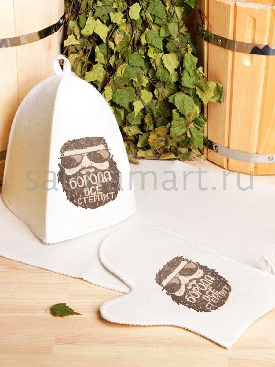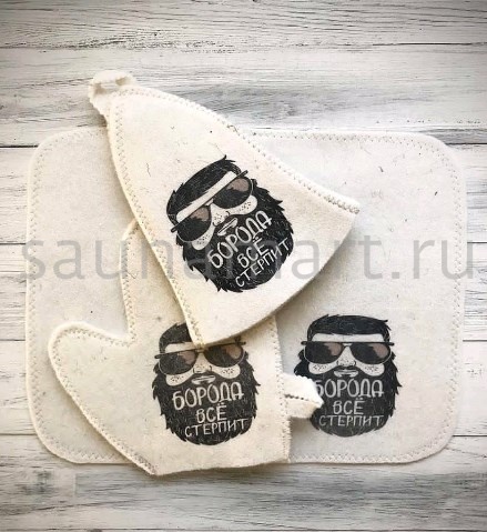 Банный комплект - Борода всё стерпит ( сумка шапка варежка коврик )