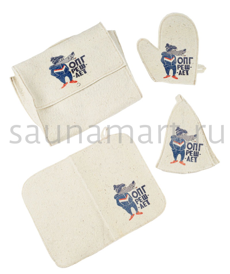 Банный комплект - ОПГ решает ( сумка шапка варежка коврик )