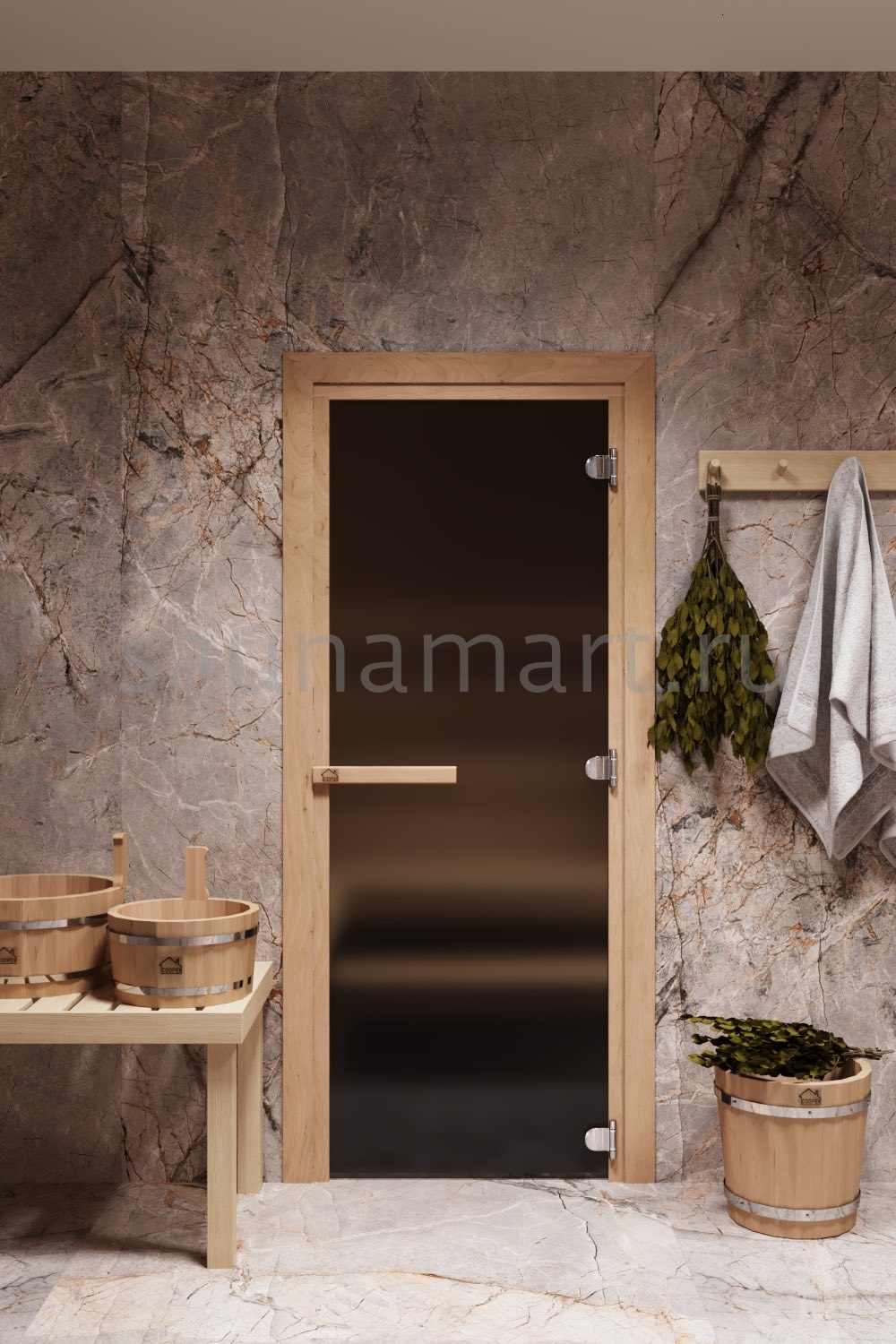 Дверь для сауны 1900х700 Бронза матовая 8 мм 3 петли ольха
