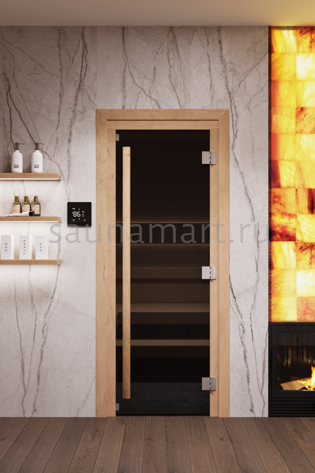 Дверь из закаленного стекла великолепно вписывается в парную любой бани и сауны.