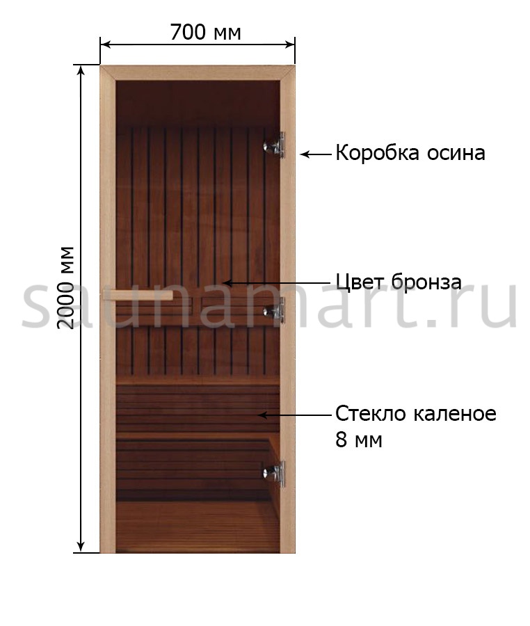 Дверь для сауны Экодорс 2000х700 (бронза осина) ст. 8 мм