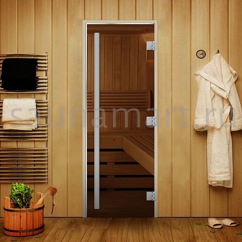 Дверь для сауны Статус 60G 1900х700 (бронза) вертикальная ручка комби. осина/липа