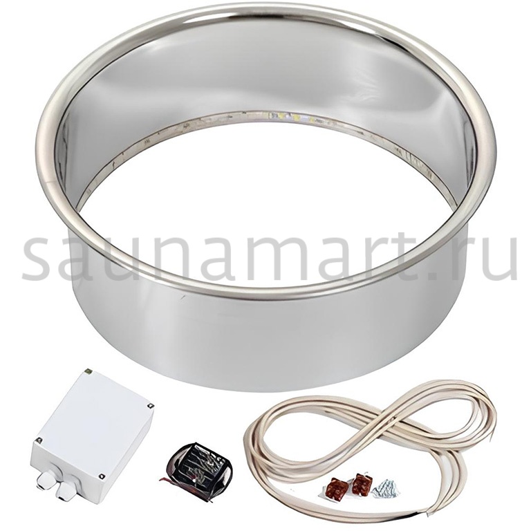 Фланец соответствует всем требованиям пожарной безопасности. Светодиодная подсветка обеспечивает мягкое освещение и создает особую атмосферу в сауне.