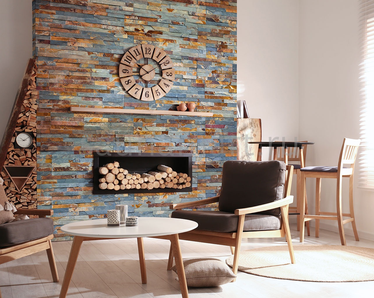 Мультиколорная гамма сочетает теплые и холодные тона в естественных природных комбинациях. Натуральный сланец обладает слоистой структурой, устойчив к влаге и перепадам температур. Идеален для создания акцентных стен в современных интерьерах и эффектных фасадных решений.