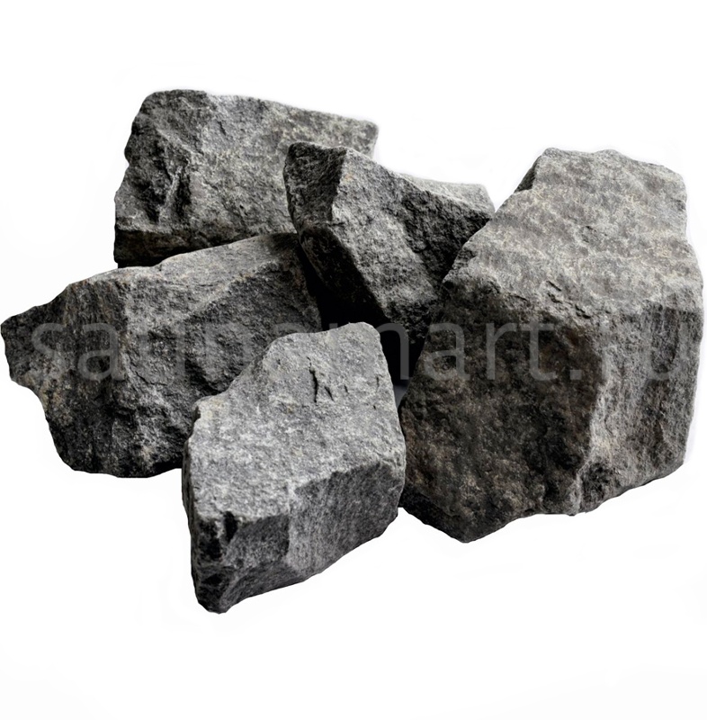 Камень «Габбро-диабаз» — популярный наполнитель для банных печей. Упаковка: 20 кг.
