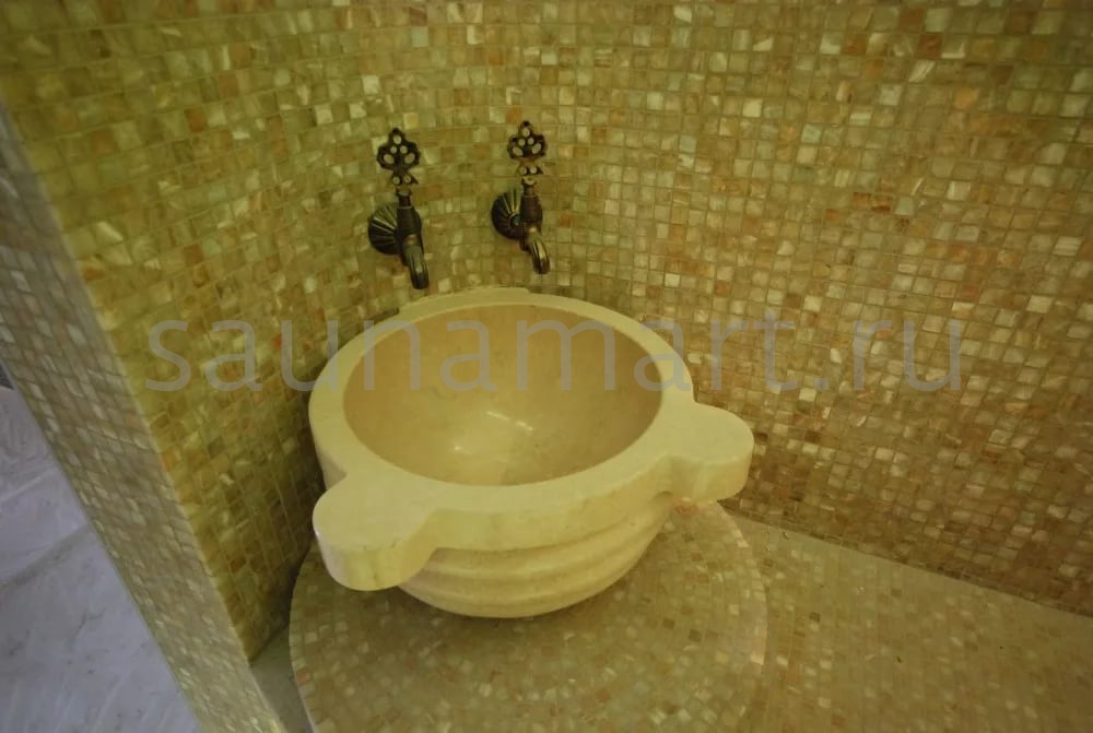 Традиционно, турецкая баня отличается роскошным убранством. Точёные элементы её интерьера не только красивы, но и функциональны. Курна служит для омовения после банных процедур. Курна Камнирус КМ01 изготовлена из мрамора и, будучи современной моделью, оснащена сливом. Мрамор устойчив в условиях повышенной влажности, а это значит, что курна прослужит Вам долгое время. Приобретение курны КМ01 поможет Вам дополнить традиционную обстановку хамама.