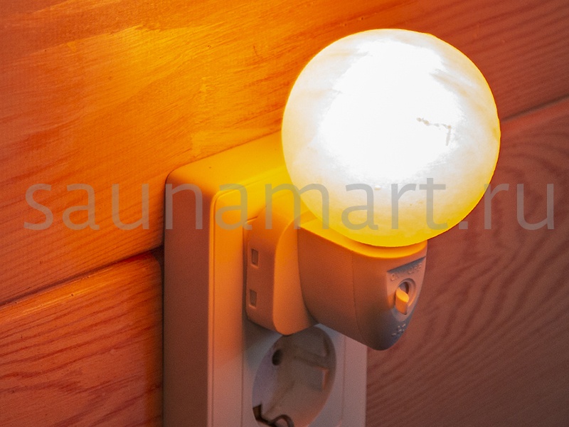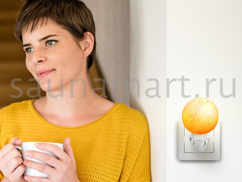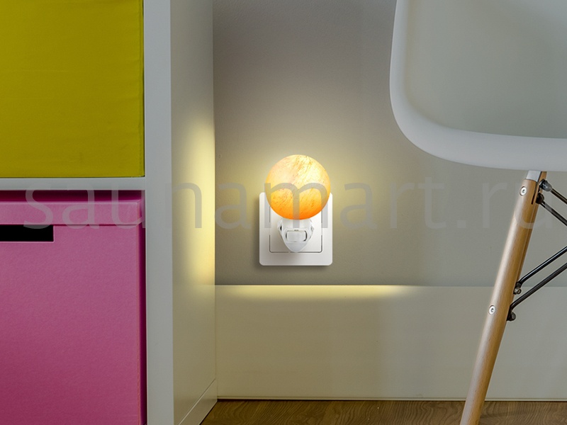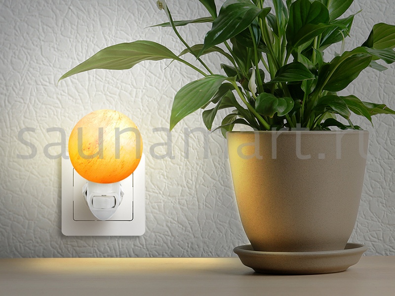 Ночник декоративный в розетку из гималайской розовой соли. Теплый, мягкий, рассеянный свет ночника даст приятное освещение и создаст неповторимую атмосферу уюта в доме. Приглушенный свет соляного плафона ночника не помешает сну, поэтому декоративный светильник прекрасно подойдет для использования в детской комнате и спальне. Во всем мире принято считать, что гималайская соль является природным ионизатором воздуха, а подсвеченная изнутри абажура соль, дает эффект цветотерапии. Ионизированный воздух благоприятно действует на нервную систему, за счет чего  улучшается сон, снижается излишняя тревога и стрессы. Светильник из гималайской соли это уникальный декор интерьера. Плафон изготовлен вручную, поэтому каждый ночник из соли имеет свой уникальный вес, размер, цвет, форму, внутренний узор, фактуру. Темные, светлые вкрапления и трещинки являются нормой. Абажур различается по цвету от белесого, полупрозрачного до оранжево-розового - сортировка по цвету не производится.