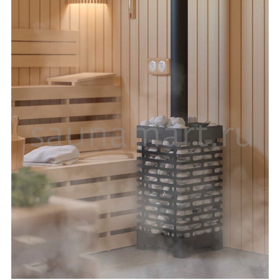 - Большая масса камней, закладываемых в сетку-кожух печи, обеспечивает стабильность температуры в парилке и является мощным парогенератором.