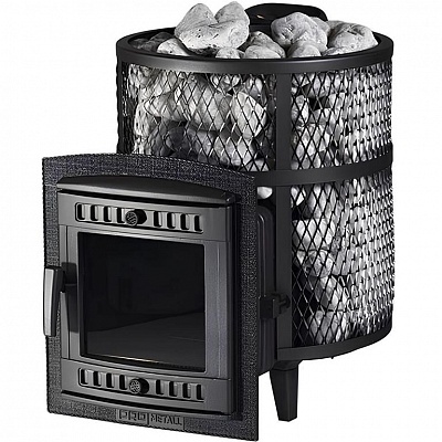 Ультра компактная модель банной печи. Кожух печи изготовлен в виде сетки из нержавеющей стали и полностью заполняется природными камнями, обеспечивая высокую динамику нагрева парильного помещения.