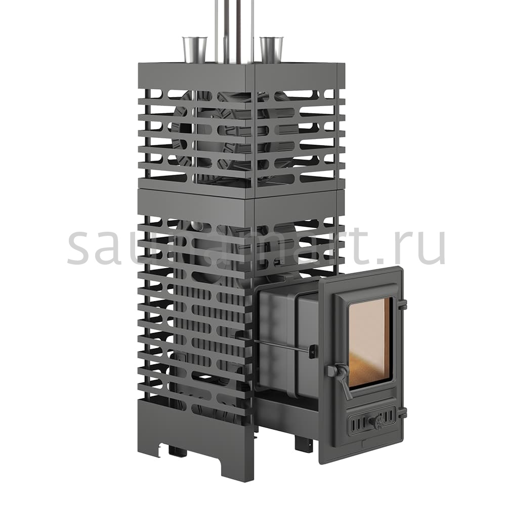 Внешний парообразующий контур представлен сеткой-конвектором, в которую размещается до 120 кг камней для бани. Сетка изготовлена из стали, выполнена в дизайне Астон и окрашена термостойкой краской.