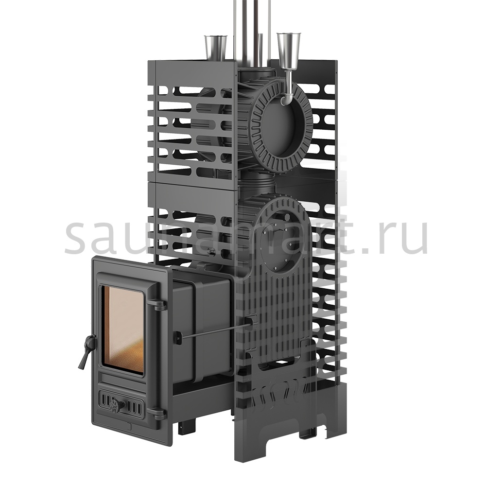 Для закладки камня предназначена цилиндрическая каменка из нержавеющей стали AISI 430, размещённая на пути пламени и горящих дымовых газов. Каменка рассчитана на 15-20 кг камней для бани, которые за счёт обтекания пламенем нагреваются до температур свыше 450°C.