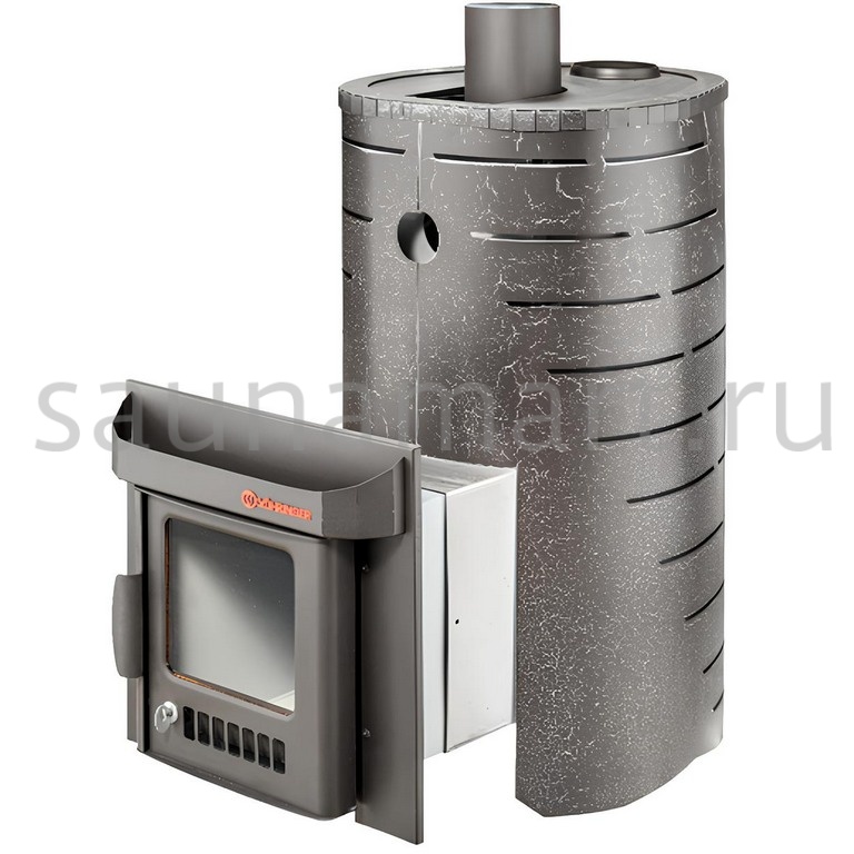 Боковое и верхнее горение. Быстрая передача тепла камням, минимальный расход дров.