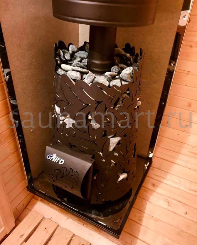 Несмотря на свои небольшие габариты, печь эффективно прогревает помещение и нагревает камни до рабочей температуры 250-300 градусов Цельсия.