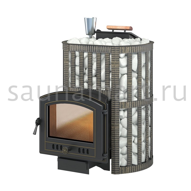 Банная чугунная печь Ураган Ковка 16 (224) укомплектована чугунной герметичной дверцей Везувий 224 с жаропрочным стеклом SCHOTT ROBAX. Закрытая каменка изготовлена из стали и вмещает в себя не менее 60 кг камней. Конвекционно-вентилируемый кожух "Ковка" изготовлен из металлической текстурированной полосы, покрашенной термостойкой краской с патиной «Бронза».