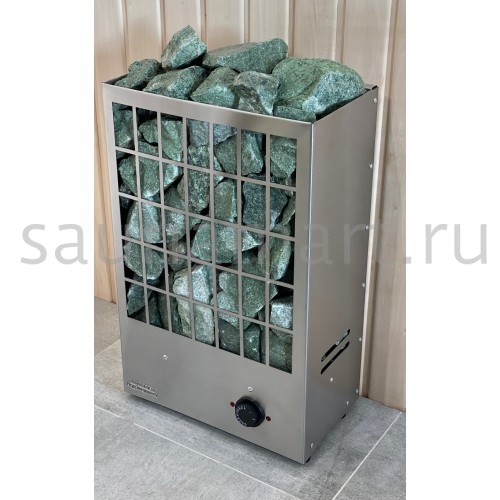 - мощность 7 кВт - работает от 220/380В - настенное/напольное размещение - объем бани 7 - 11 м3 - 3ТЭНа из нержавеющей стали - регулировка температуры воздуха в парилке от 40-120 градусов (встроенный пульт) - масса вмещаемых камней (рекомендованная) 50 - 60 кг (камень Жадеит фракция 4-7 см, в наличии) Материал изготовления ТЭНов (нагревательных элементов) - нержавеющая сталь, средний срок работы тэнов - 10 000 часов, расположенных вертикально по всей камере, обкладываются вокруг камнем и сверху создается "горка" из камней. Материал изготовления корпуса - нержавеющая сталь. ПАРОВАЯ ПУШКА (пароиспаритель) и КАМЕНЬ ЖАДЕИТ приобретается отдельно! Листовой металл. Регулируемые опоры до 20 мм. Настенное или напольное размещение электрокаменки. Внутри электропечи размещен термостат, с рукояткой для управления температуры в сауне (температурный датчик выносится и подвешивается в парильне, регулирует именно температуру в сауне, а не температуру в каменке, что исключает раннее отключение нагрева при не достижении нужного температурного режима в парилке). Открытая конструкция с высокой загрузкой камня (дает возможность согреваться от камня, получая мягкое тепло), НАДЕЖНАЯ КОНСТРУКЦИЯ (хорошая циркуляция воздуха между тэнами и высокая теплоотдача каменки вперед и наверх) и при желании, можно подливать воду (в разумных пределах) на разогретые камни! Высокий объем загрузки камней в нашу каменку 50- 60 кг дает возможность получать больше мягкого и приятного тепла в парилке !!! Гарантия от производителя - 12 месяцев. Производство: Россия, Челябинская область, г. Челябинск Размеры: 39 см (ш) х 22 см (25 см с креплениями) х 60 см (В) Вес: 15 кг