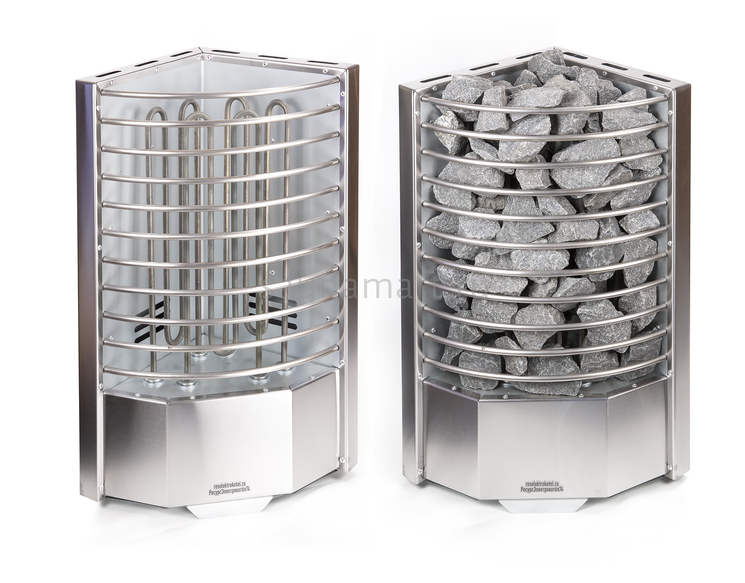 Электрическая печь ЭКМ 9 кВт "Олимпия" — угловая печь из нержавеющей стали, предназначенная для использования в банных помещениях. Производится в России (г. Челябинск) и обеспечивает эффективное теплоотдачу и комфорт в парилке.
