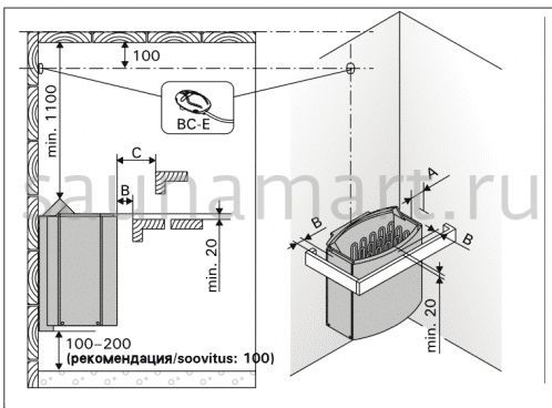 Рекомендации по установке. Для оптимальной работы электропечей Harvia необходимо учитывать: