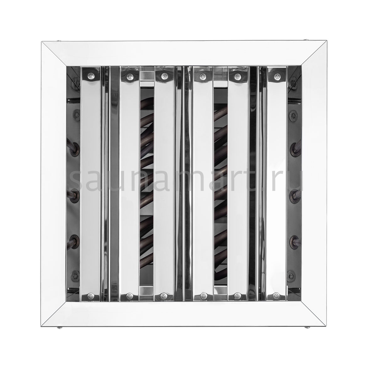 Нагревательным элементом в печке является ТЭН из высококачественной нержавеющей стали. Его диаметр составляет 13 мм. Подобные нагреватели не боятся попадания влаги. Это позволяет устанавливать электрическую каменку как в финские сауны с «сухим» паром, так и в русские традиционные бани с повышенной влажностью, потому что на камни, находящиеся в электропечи можно спокойно лить воду для повышения влажности пара.
