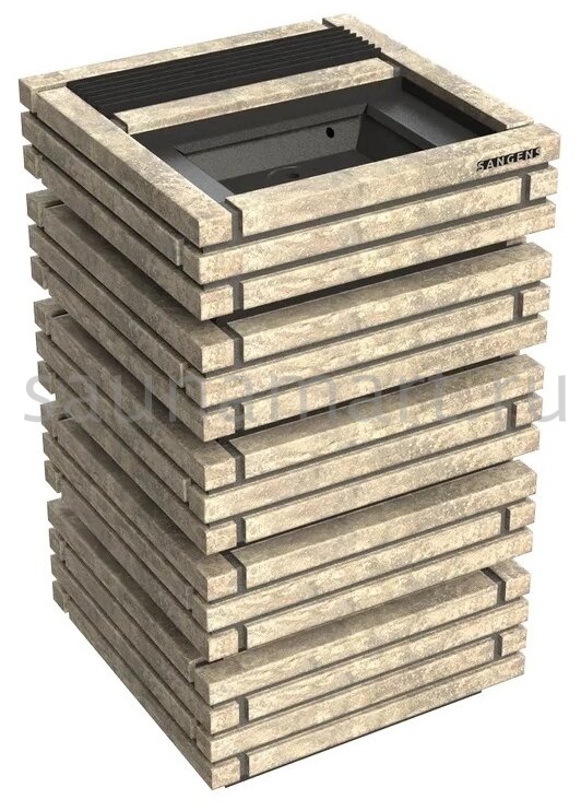 Электрическая банная печь Sangens W12B — 6-киловаттная модель из серии W для помещений 9-10 м? (9 м? для сауны, 10 м? для бани). Оснащена комбинированной каменкой (закрытый отсек: 25-45 кг камней, открытый: 15 кг) с нагревом до 530°C за 2.5 часа, прогревает парную до 70°C за 1.5 часа. Управление — дистанционное и ручное. Облицовка — ригельный кирпич (коричневый, 110 кг), общий вес — 165 кг. Габариты: 54?54?95.5 см. Камни приобретаются отдельно.