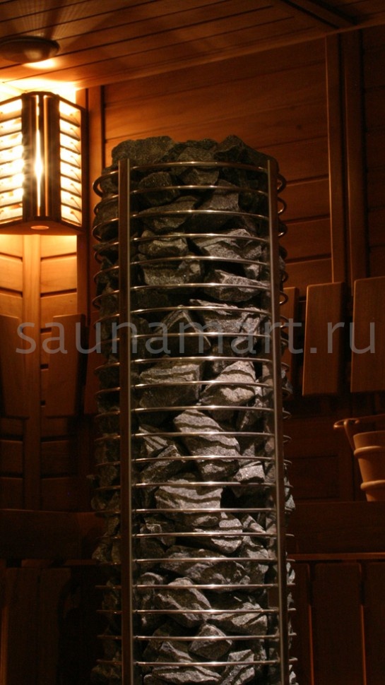 Электрокаменка TOWER TH6-90NS-P от компании SAWO станет настоящим сердцем для вашей домашней сауны, или коммерческой парной средних размеров объёмом 8-15 метров кубических. Конструкция каменки предполагает напольную установку и большую вместимость камней. Корпус печи имеет нетипичную форму вертикального цилиндрического каркаса. Нагревательные элементы находятся в центре электрокаменки и по краям обкладываются камнем. Готовая к эксплуатации печь напоминает каменную башню и позволяет поддавать воду во время парения не только сверху каменки, но и по всей поверхности корпуса. Это особенно сильно порадует любителей влажной русской бани. С каменкой TOWER добиться большого количества лёгкого мелкодисперсного пара можно в самые короткие сроки. Ценителям традиционной сухой финской сауны придётся по душе быстрый прогрев парного помещения и равномерное распределение тепла. Для изготовления печи компания SAWO использует высококачественную нержавеющую сталь. При условии постоянного воздействия агрессивной внешней среды материал остаётся устойчив к коррозии, обеспечивая длительный срок эксплуатации. Подключение производится к сети с напряжением 380 В. В качестве дополнения к данной модели вы можете купить удобный выносной пульт с интуитивно понятным интерфейсом. Пульт размещается в предбаннике и позволяет запрограммировать режим работы электрокаменки.