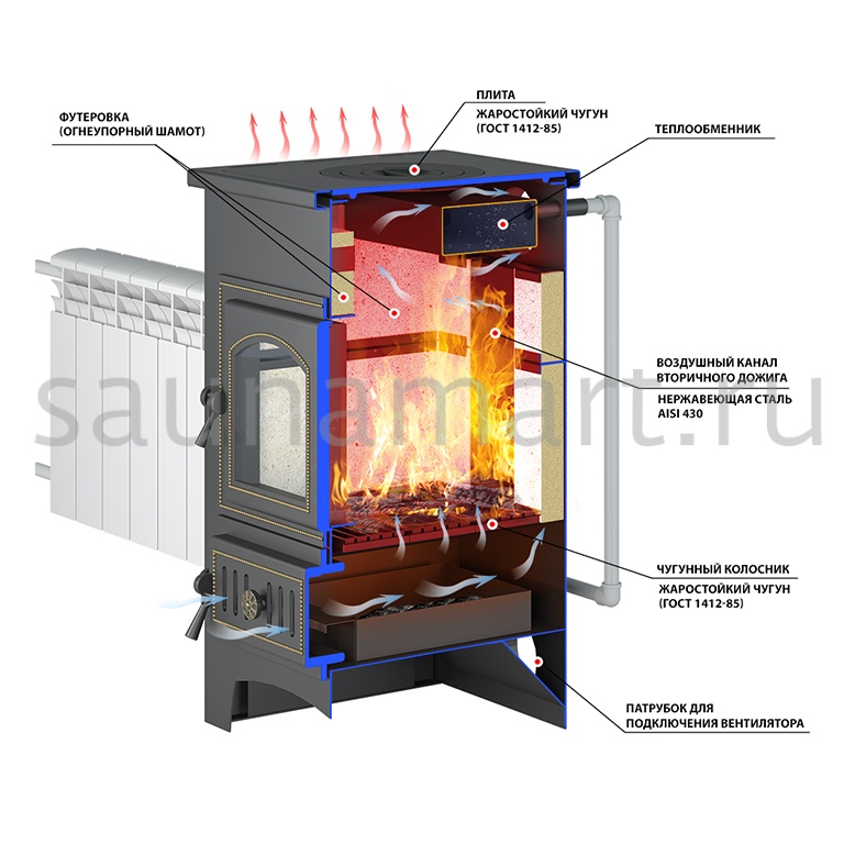 • Материал дверки: жаростойкий чугун (ГОСТ 1412-85)