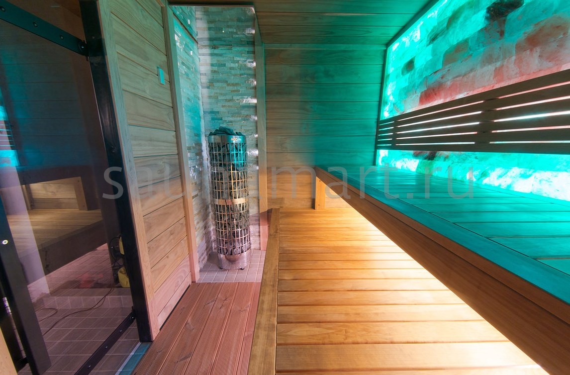 Гималайская соль применяется в изготовлении декоративных элементов для бань и саун. Солевые испарения создают оздоровительный эффект. Насыщая пар в сауне, они создают исключительно благоприятную атмосферу для отдыха. Подсвеченная солевая плитка станет оригинальным элементом декора и создаст комфортную обстановку в Вашей сауне.