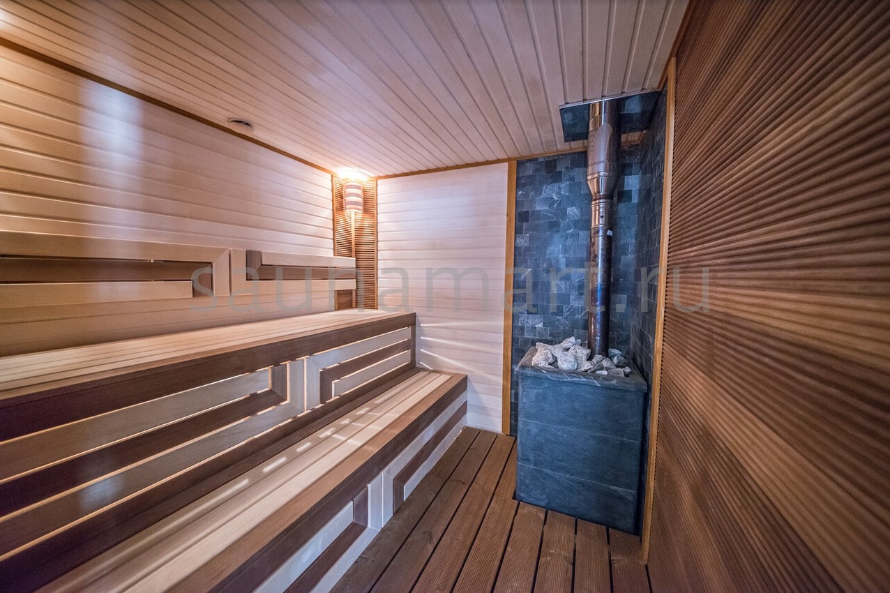 Термоосина – это древесина осины, прошедшая термическую обработку при температуре 180–230°C в специальных камерах с ограниченным доступом кислорода. Процесс включает три этапа: нагрев, термообработку и охлаждение. В результате древесина становится плотнее, приобретает устойчивость к влаге, гниению и деформации, а также меняет цвет на более тёмный (от золотисто-медового до шоколадного). Термообработка устраняет смолу и снижает теплопроводность, делая материал безопасным для контакта с кожей.