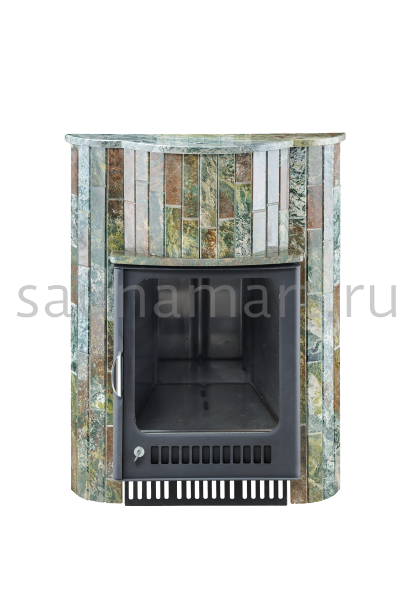 Для печи «Малютка» серии ПФ производитель V?hringer выпускает порталы из натурального мрамора, змеевика и жадеита. Облицовочные материалы поступают на завод в слэбах, заготовки разрезают на пластины, которые затем навешивают на печь.