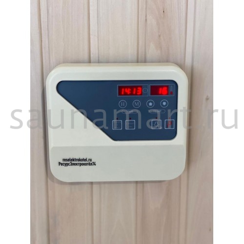 Пульт управления элeктрoкaмeнкой (электропечью для сауны) ПУЭКМ "Ресурс" цифровой программируемый до 21 кВт включительно. Пульт устанавливается в предбаннике, а датчик заводится в парилку. Длина кабеля с датчиком температуры 3 метра. Датчик с кабелем идут в комплекте с пультом. Возможно удлинение кабеля, методом наращивания.