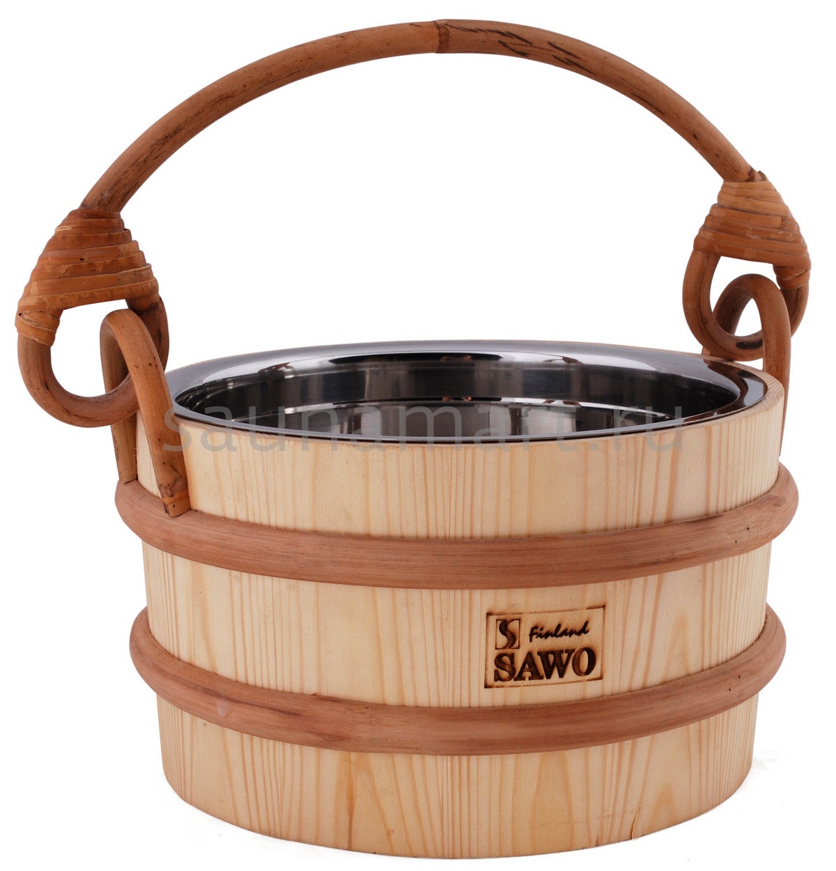Ведро для саун Sawo изготовлено из сосны. При этом внутренняя поверхность ведра пластиковая. В изделии сохранён дух русской традиции.