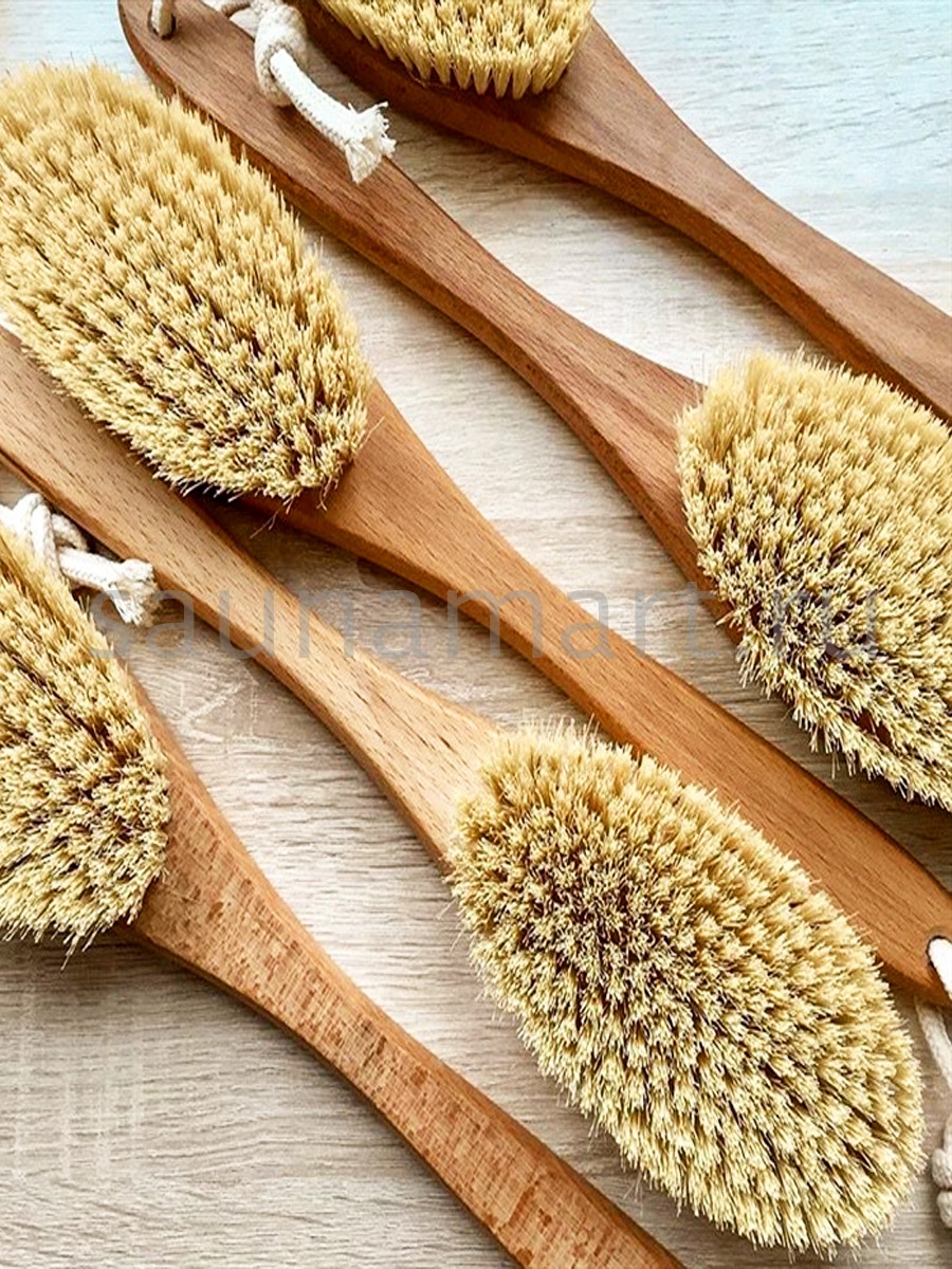 Щетка для сухого массажа и душа с удобной ручкой обеспечивает интенсивное обновление кожи и стимулирует микроциркуляцию.