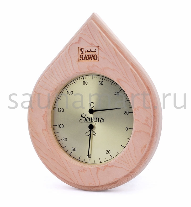 SAWO Термогигрометр 251-THD Измеритель влажности и температуры Sawo в темном корпусе в виде "капли" отличается надёжностью и долговечностью. Он позволяет одновременно контролировать влажность и температуру в сауне. Корпус прибора выполнен из пиломатериалов лиственных пород(rедр). Термогигрометр впишется в интерьер любой сауны, украсив его. Температурная шкала термометра от 20 до 120 градусов. Размеры, м: 0,185х0,225 Материал: пиломатериалы лиственных пород.