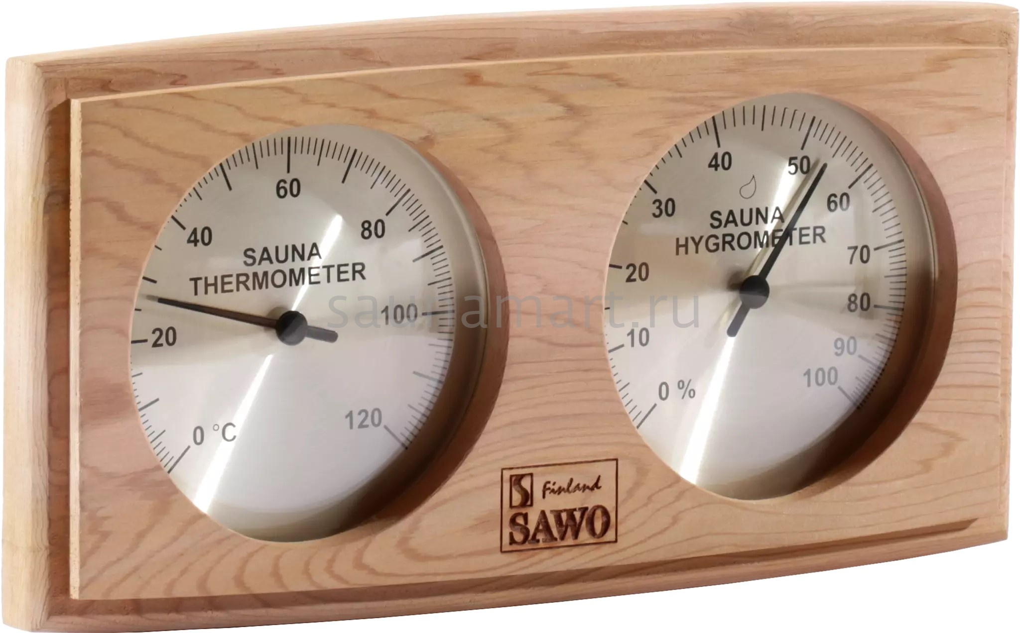 SAWO Термогигрометр 271-THD Закругленный термогигрометр Sawo отличается надёжностью и долговечностью. Он позволяет одновременно контролировать влажность и температуру в сауне. Корпус прибора выполнен из пиломатериалов лиственных пород. Термогигрометр впишется в интерьер любой сауны, украсив его. Температурная шкала термометра от 20 до 120 градусов. Размеры: 225х125 мм Материал: пиломатериалы лиственных пород Производитель: Финляндия