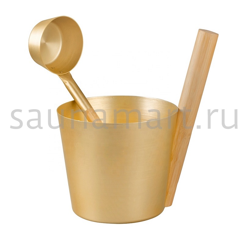 Ведро для бани и сауны изготовлено из алюминия и термообработанного бамбука.