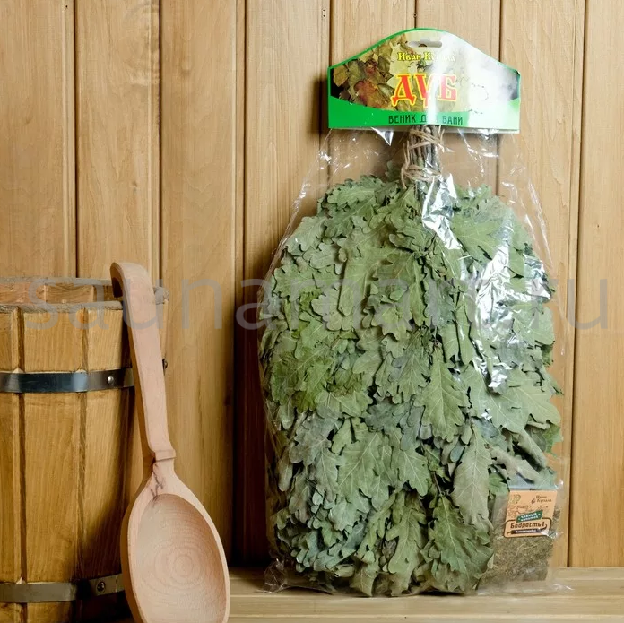 Листья и веточки дуба богаты эфирными маслами и дубильными веществами. Дубовый веник эффектно выглядит, ароматен, а благодаря особой форме резных и широких листьев он способен отлично впитывать пар.