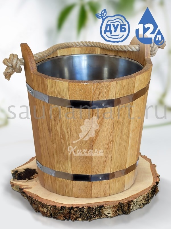 Отлично подходит для хранения и переноски воды, настоя трав, запарки веников. Вставка из пластика обеспечит удобный уход. Ведро оснащено удобной ручкой из толстой бечевы. Наружная часть изделия обрамлена металлическими обручами для надежности конструкции.
